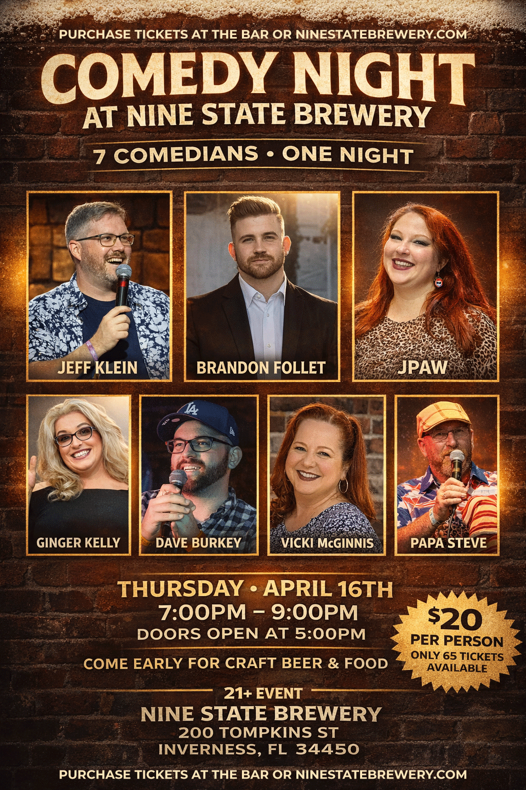 Nine State Brewery is located in downtown Inverness, FL. Eric Lesage, the owner and head brewer, has been brewing beer for over 15 years. His journey started in Massachusetts and throughout his brewing journey, he has traveled between Massachusetts and Florida (“Nine States”) to land at this craft beer destination.